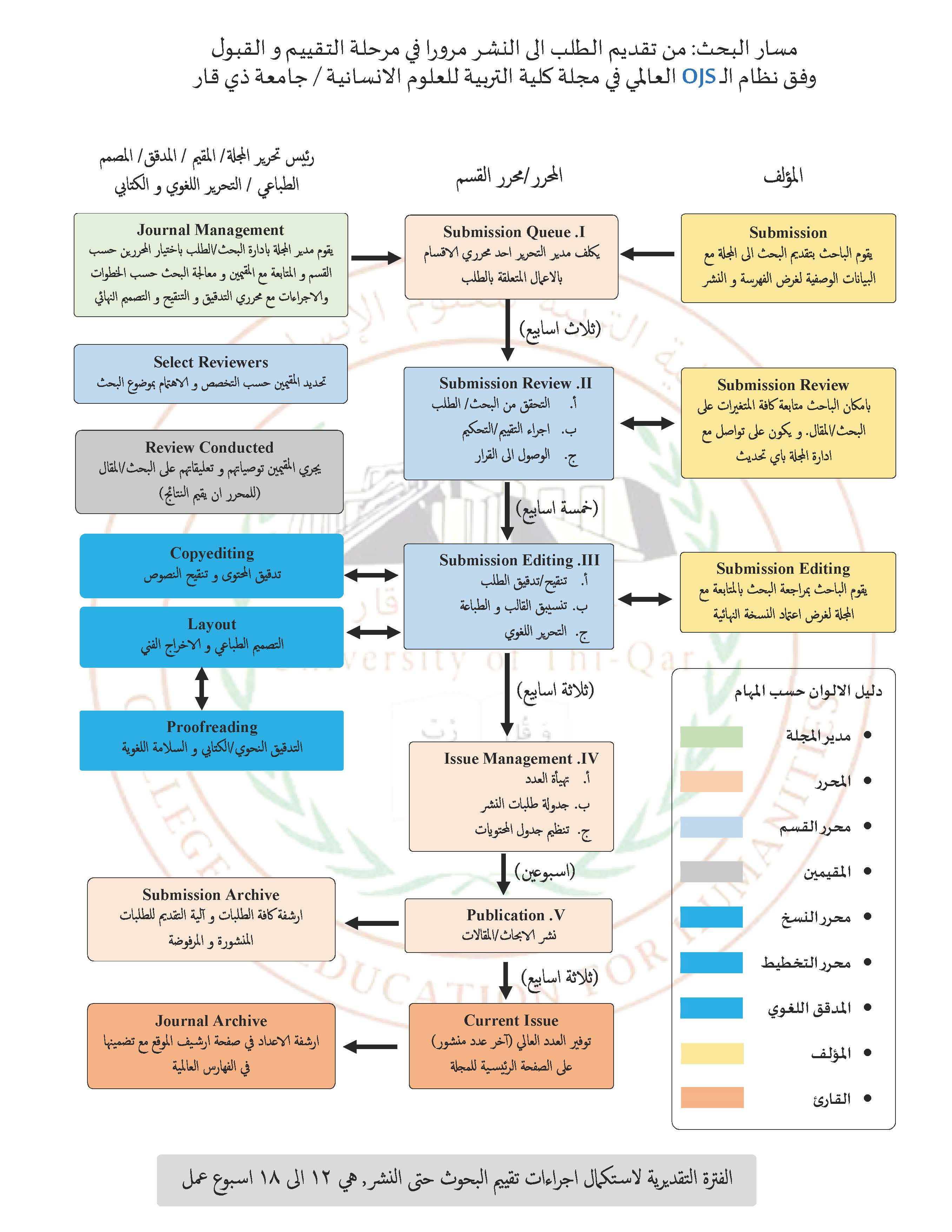Manuscripts submitted to the Journal of the College of Education for Human Sciences – University of Thi-Qar undergo a structured and transparent review process to ensure academic quality and integrity. The process follows the stages outlined below:
